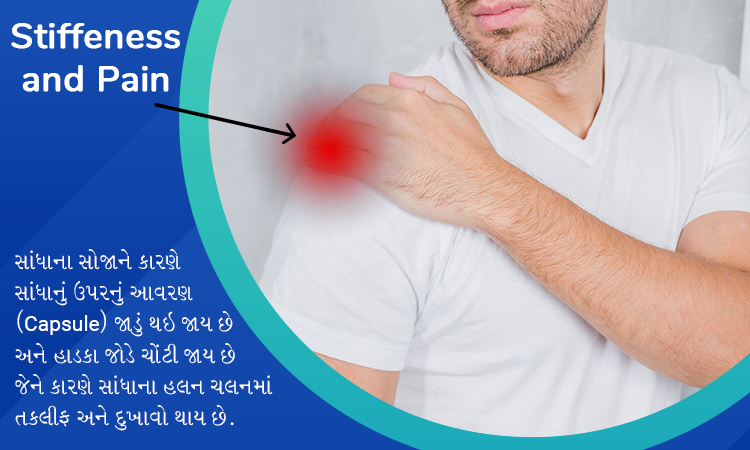 •         સાંધાના સોજાને કારણે સાંધાનું ઉપરનું આવરણ (CAPSULE) જાડું થઈ જાય છે અને હાડકા જોડે ચોંટી જાય છે જેને કારણે સાંધાના હલન ચલનમાં તકલીફ અને દુઃખાવો થાય છે.