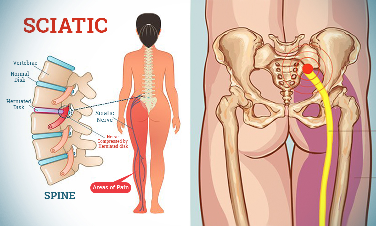 જ્યારે મણકા વચ્ચેની ગાદી કરોડરજ્જુમાંથી નીકળતાં ચેતાતંતુ પર દબાણ કરે ત્યારે તેને સાયટીકા કહે છે.